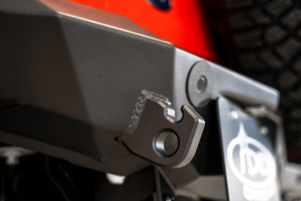 The Rock Fighter Bronco Rear Bumper was designed to flow seamlessly with the contours of the rear end. It’s low profile, modern plate steel construction is perfect for crawling rocks on the trail. The Rock Fighter retains the OEM tire mount & backup camera, but an included relocation bracket moves the 3rd brake light further up to allow for a 37-inch spare tire to be mounted. Additionally, the bumper retains both the OEM hitch and license plate light. Two reinforced clevis mounts for ¾-inch D-rings provide recovery options if you find yourself in a tight spot. The Rock Fighter Rear Bumper not only provides you with improved off-road performance, but brings a more aggressive styling than the factory plastic bumpers. As always, this is fully bolt-on and Made in America.