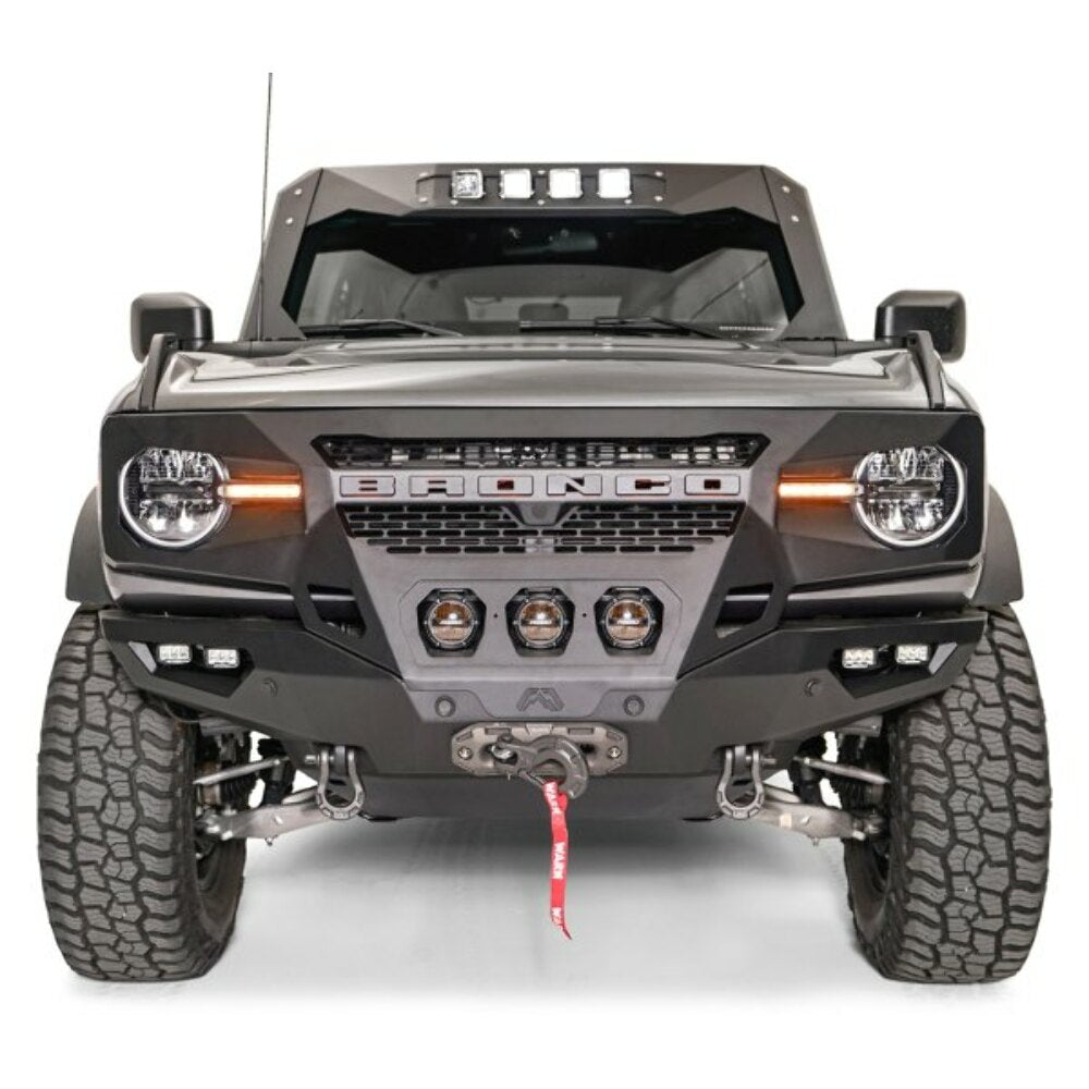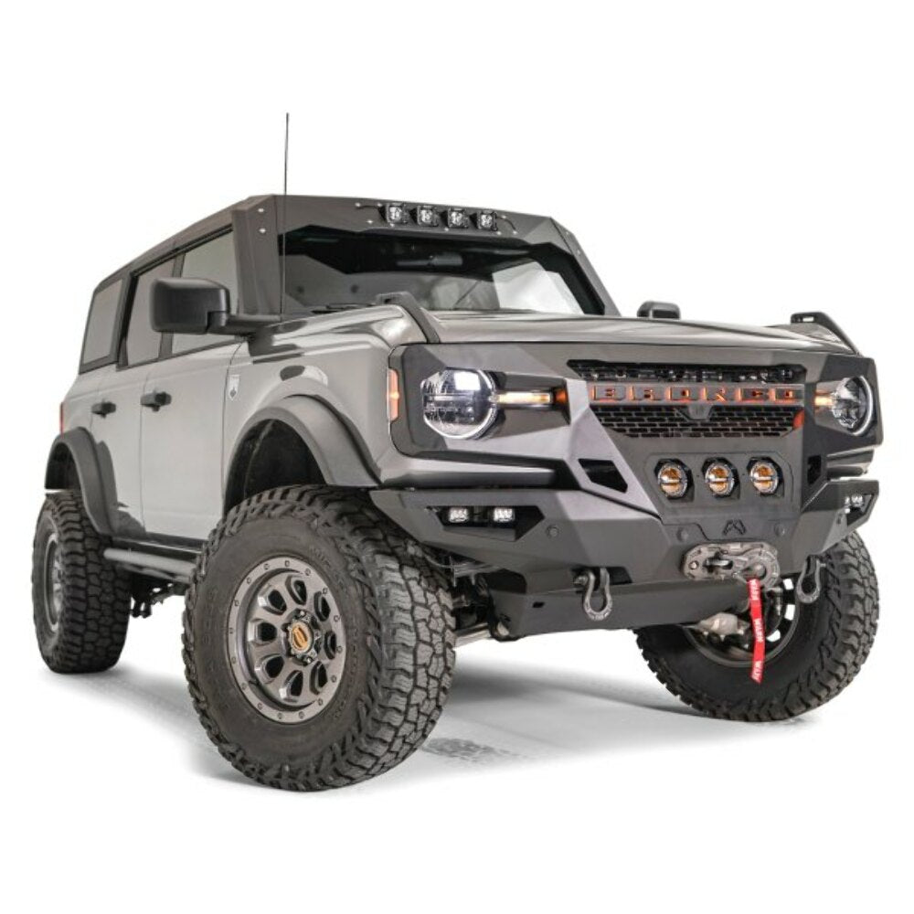 From Concept to Reality…The GRUMPER for the Ford Bronco is HERE! A revolutionary combination of both grille and bumper in one product. Aggressive styling with all the details: sensor compatible, accommodates adaptive cruise control, winch ready, (2) integrated D-ring mounts, various light options for the front and side wings. The Grumper for the Ford Bronco is a game changer! All made in the USA!