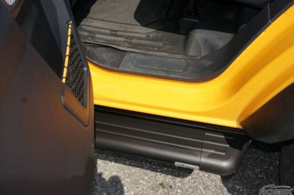 Maybe your truck didn’t come with side steps, but even if it did, you’d still be making a significant upgrade by installing a set of Romik RB2 Running Boards. The finish will give your truck a custom look, and the extra wide step pads will give you and your passengers sure footing. These sleek running boards will be an attractive and functional addition to your truck.